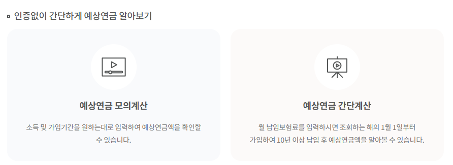 현재까지 납부한 연금 보험료를 기준으로 미래에 받을 예상 연금액을 미리 확인 가능