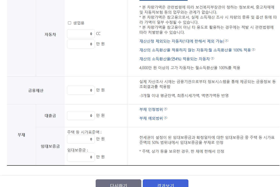 3️⃣ 개인 정보 입력 (나이, 소득, 재산 등)